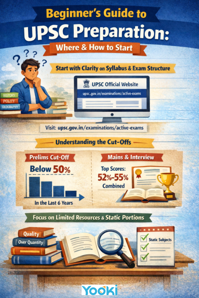 Starting UPSC preparation from scratch can feel overwhelming. Many aspirants face confusion, self-doubt, and uncertainty about where to begin. Therefore, instead of collecting multiple books or strategies, focus first on gaining clarity. Begin by carefully understanding the syllabus and exam structure. For this, refer to the official UPSC website.