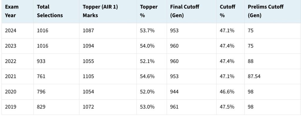 Furthermore, develop a clear understanding of the number of papers and the cut-offs required at each stage. This step is essential. Notably, the Prelims cut-off has remained below 50% for the past six years. Similarly, UPSC toppers usually score around 52%–55% of the total marks when combining the Mains examination and the interview.