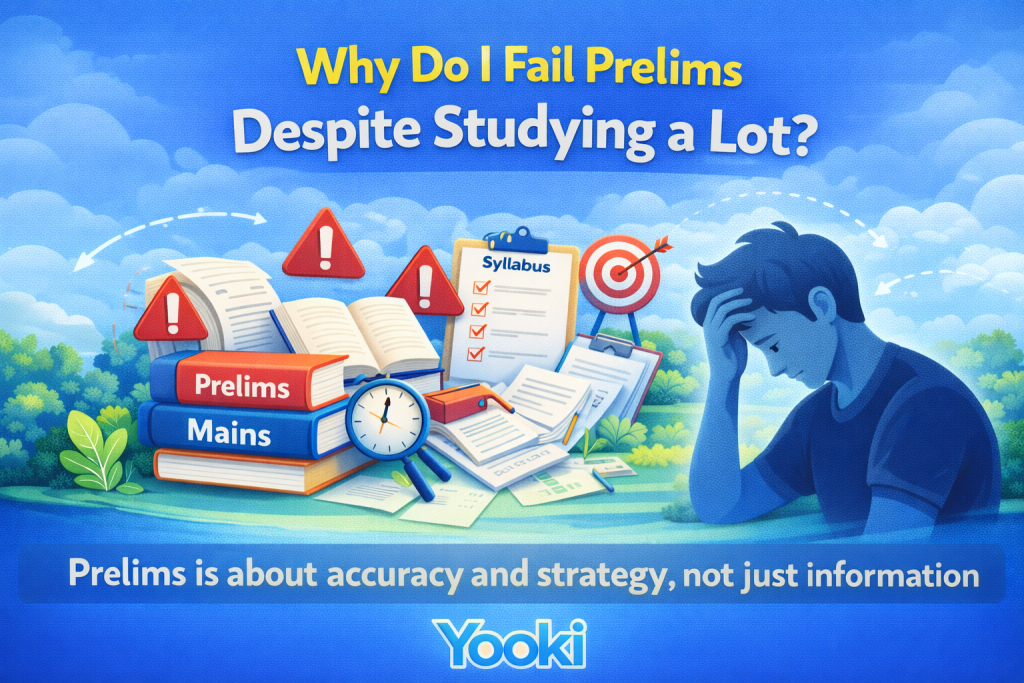 Failing prelims despite long study hours is common. The issue is usually not lack of effort — it’s lack of strategy. Prelims rewards accuracy, clarity, and decision-making, not just information.